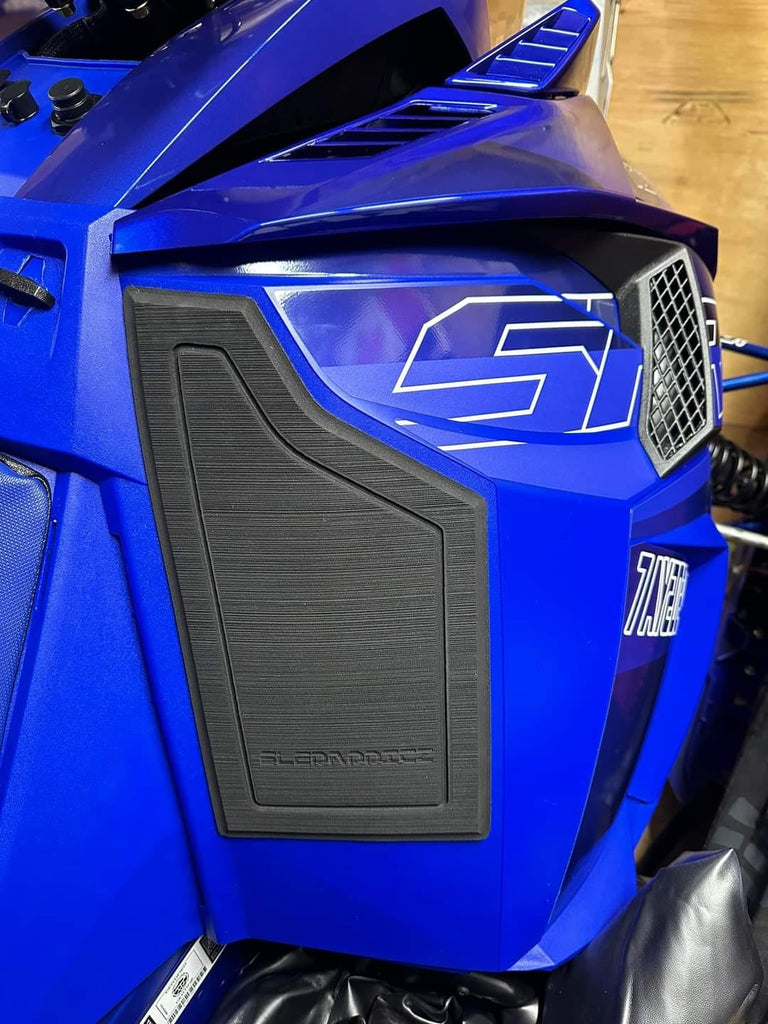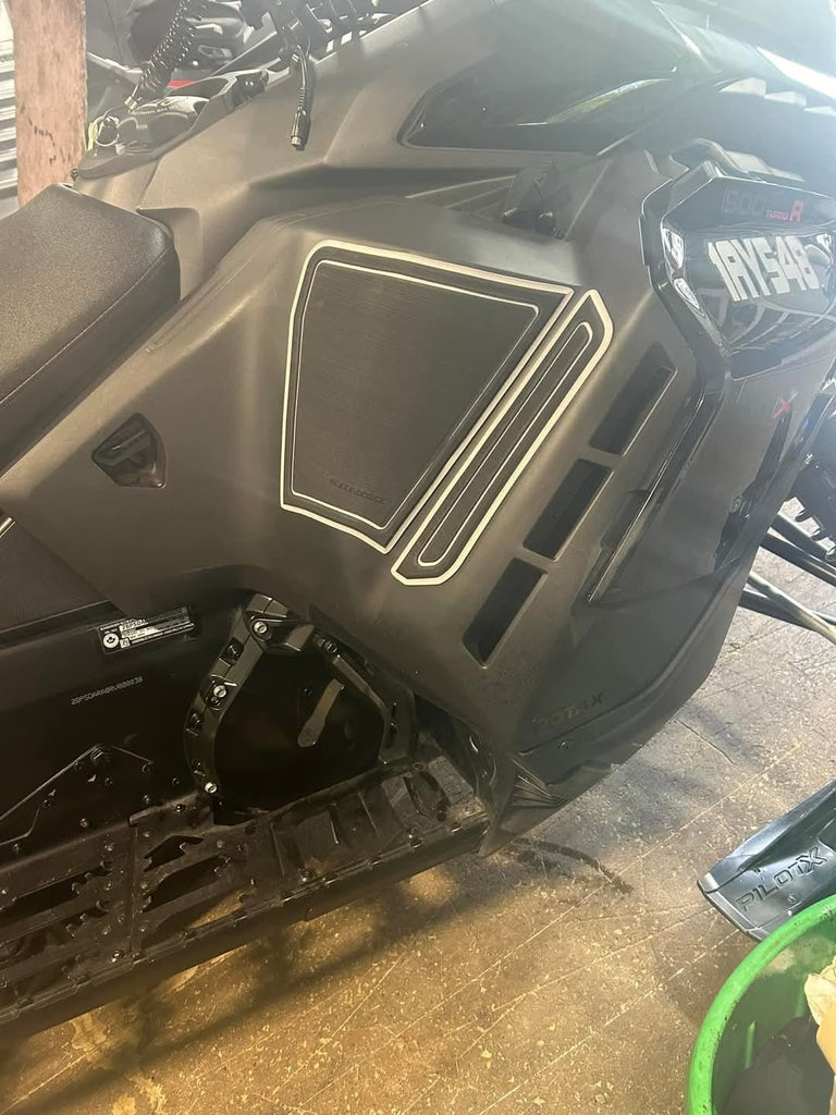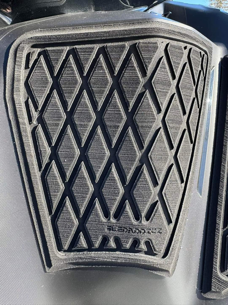 Custom designed knee pads for most major makes and models that form to the unique contours of your snowmobile. Our Premium Knee Pad Kit provides great comfort, absorption from bumps, and helps eliminate vibration. They also provide extra grip! Made from high quality OEM Seadek material and customized with one of three patterns (brushed, diamond & honeycomb). These knee pads come with a strong 3M adhesive backing to adhere to all snowmobiles!